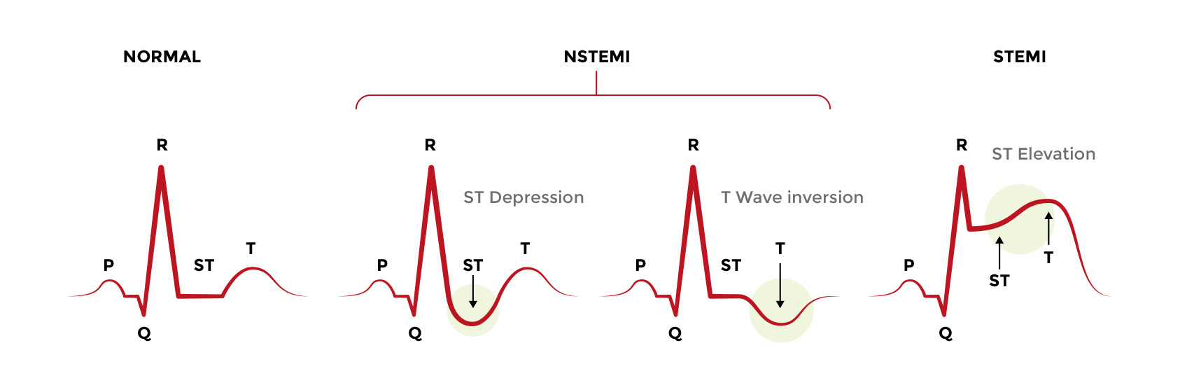 An ST-segment elevation myocardial infarction can be diagnosed using a 12-lead ECG obtained prior to reaching the hospital (in a patient with myocardial infarction symptoms such as crushing chest pain, for example). As the name implies, the ECG tracing shows an elevation between S and T waves. Roughly speaking, this means that the QRS complex connects to the T wave. Colloquially, clinicians refer to this as a “tombstone” because of its periods and what it used to mean for patients. In specific terms, an ECG that shows ST segment elevation in which the J point is greater than 2 mm in leads V2 and V3 and 1 mm or more in other leads is in ST segment elevation myocardial infarction. Likewise, a new or a likely new left bundle branch block may also receive fibrinolysis (See ECGs in Acute Myocardial Infarction).