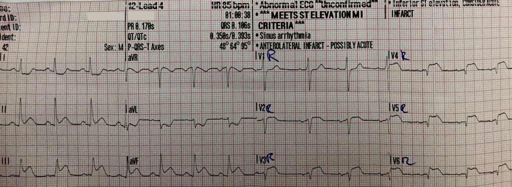 The patient is whisked away to the cardiac cath lab where a 95% occlusion to the RCA is successfully opened and stented. The patient is discharged a few days later.