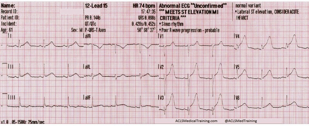 About fifteen minutes later this 12-lead ECG was acquired.