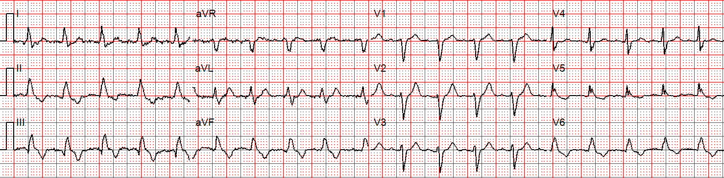 She is placed on the cardiac monitor, and the following rhythm strip is obtained.